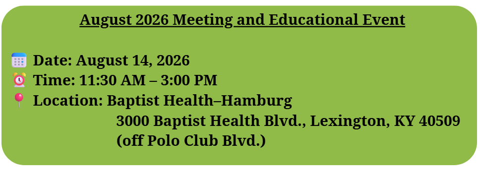 Registration Information for the August 14th Meeting/Educational Event Coming Soon!