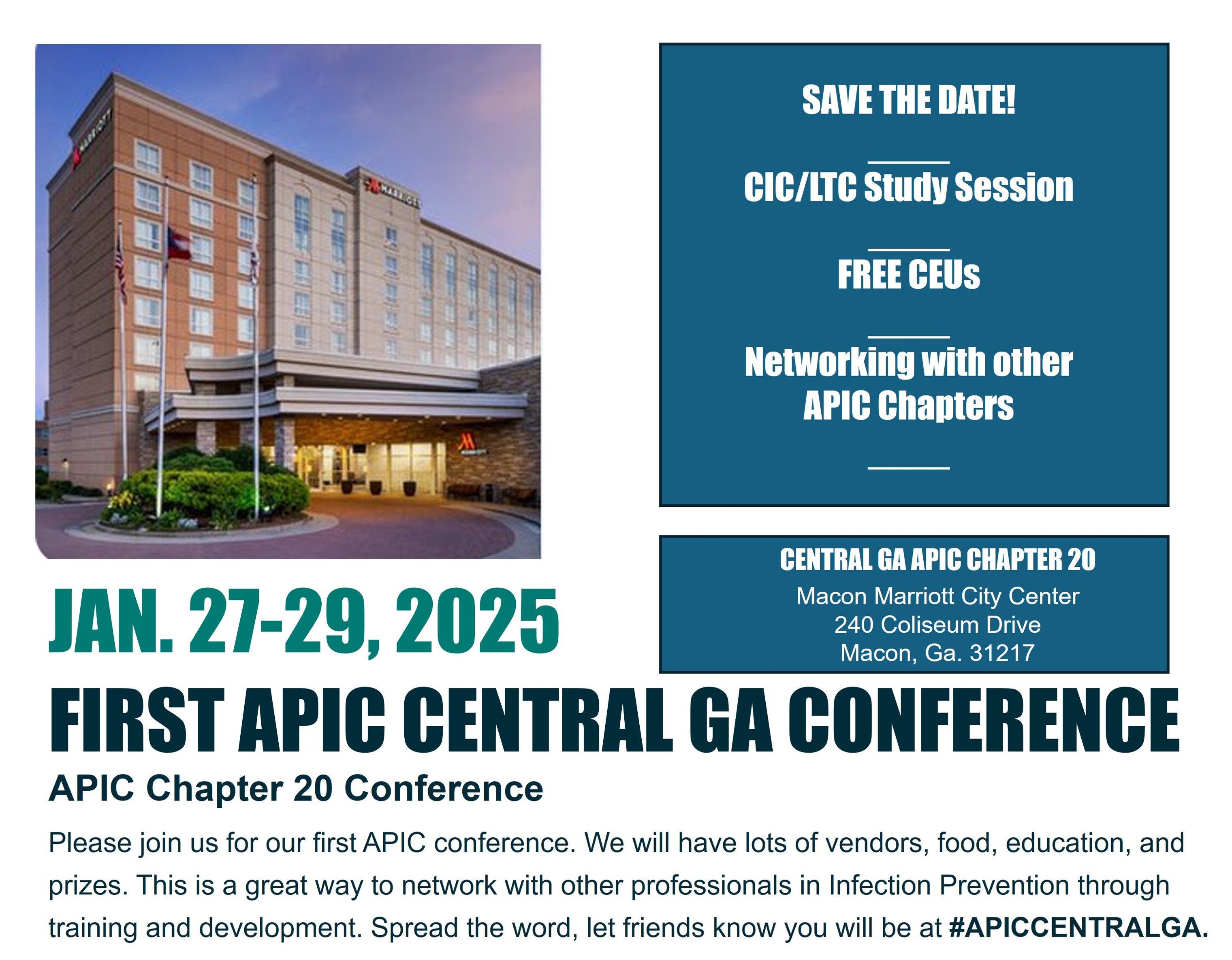 APIC Central Georgia aims to support and promote the best practice and updated science of infection control. We advance our mission through a multi-disciplinary approach involving collaboration, policy, research, and education to enhance healthcare quality.