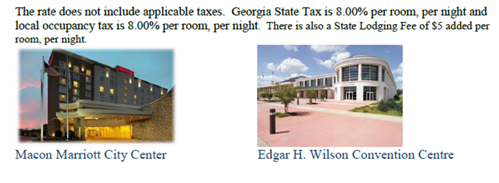 Please call hotel to book your accommodation @ 478-621-5300 and reference Health Conference for the above rate.--