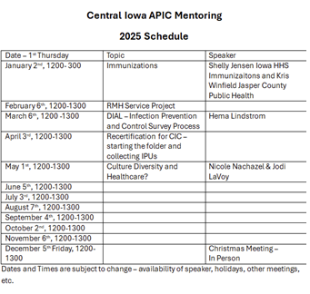 Central Iowa APIC-District 67 Meeting Topics & Locations