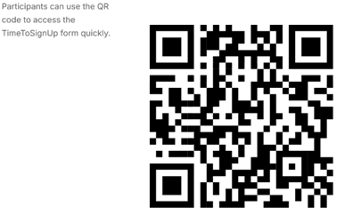 Participants can use the QR code to access the TimeToSignUp form quickly.