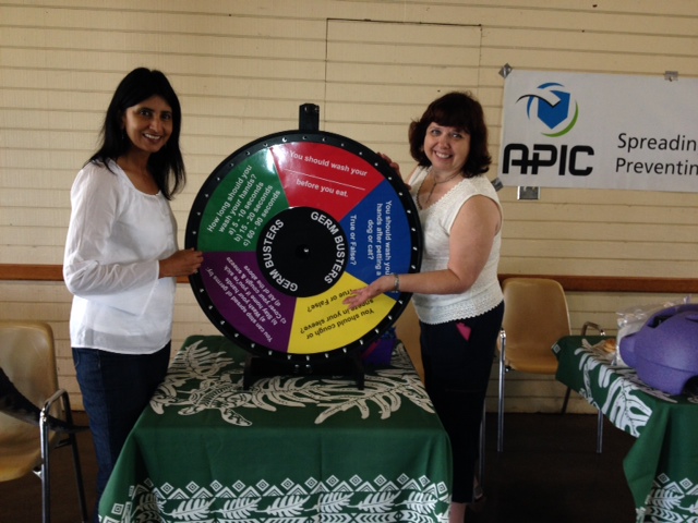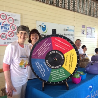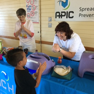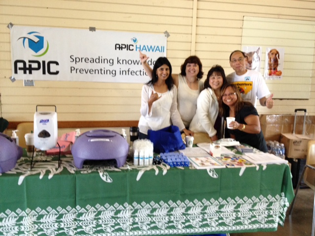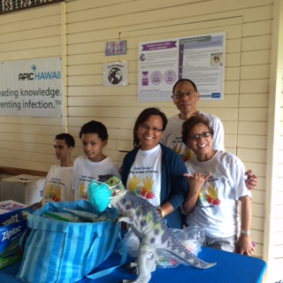 Building Infection Prevention Awareness. APIC Hawaii chapter members volunteered for a day, filled with fun activities to promote hand washing and prevent infections including handing out flu kit with hand sanitizer and mask.