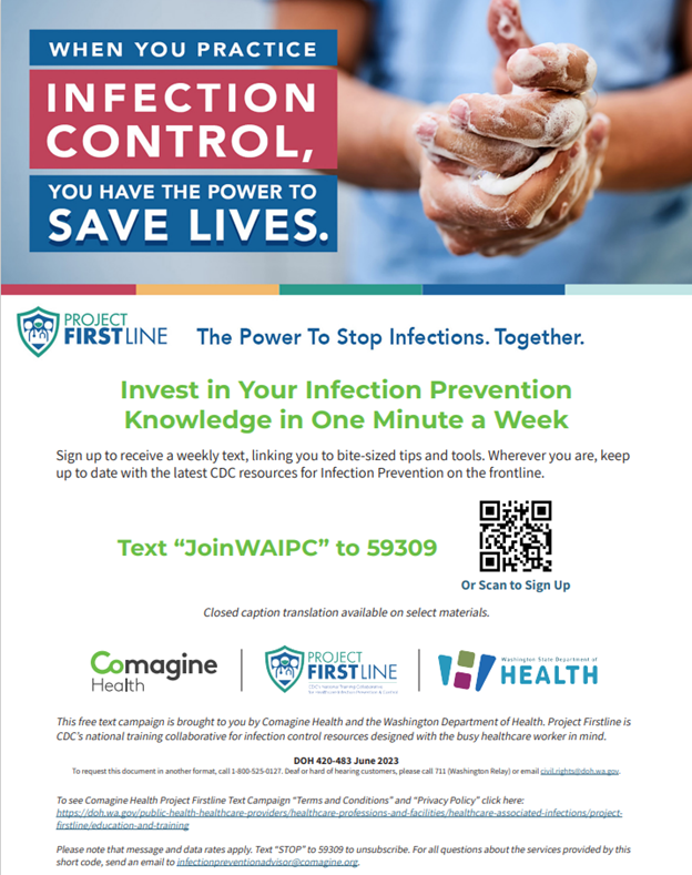Are you an infection prevention professional? Help build a strong culture of infection prevention and control in your organization by encouraging all health care personnel to sign up to receive Washington Project Firstline text messages.