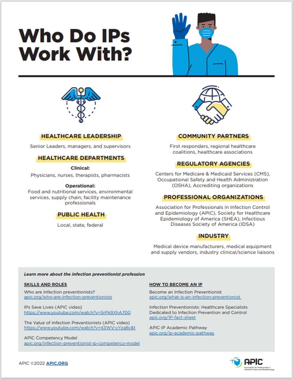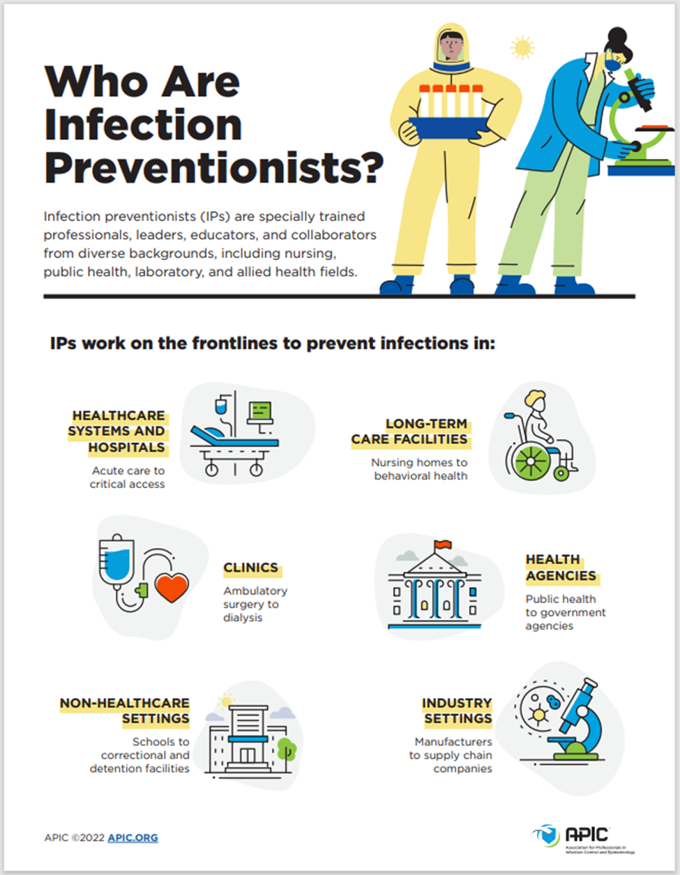 - Work to prevent healthcare-associated infections (HAIs) in healthcare facilities by isolating sources of infections and limiting their transmission.