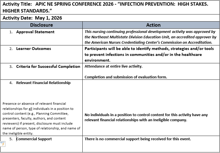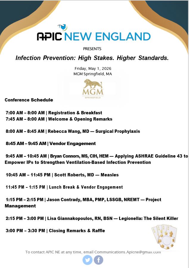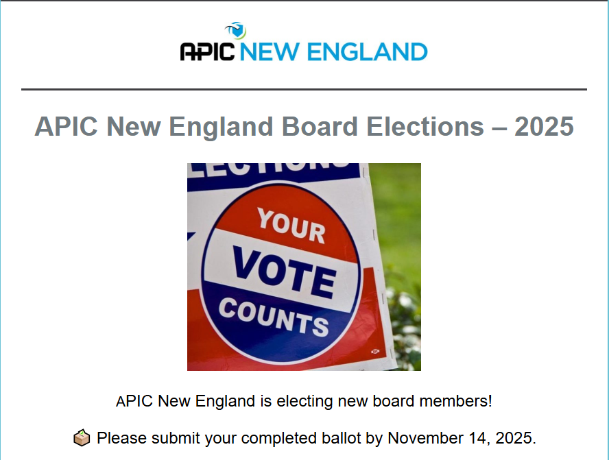 We encourage all APIC members to join the New England chapter. Full, active chapter members receive our regular newsletters, are eligible to join the board of directors and committees, receive discounted conference rates, and can enter to win our annual trip to the APIC national conference. Chapter membership costs $30 in addition to the national membership. Many members believe they are chapter members, when, in fact, they are not.
