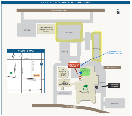 *See Map Doors to the conference rooms are nearest to the Emergency Room ambulance bay on the back side of the hospital