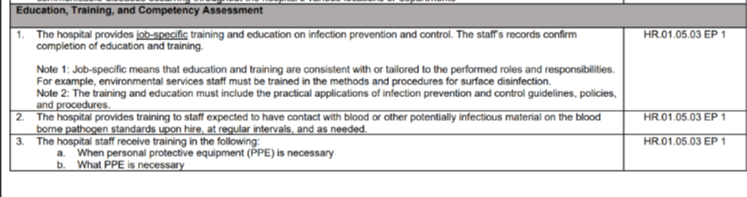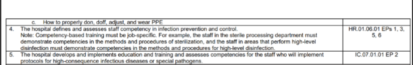 In January the new standard for education and competency requirements related to Infection Prevention practices were released by Joint Commission. (see below) They are requesting that IP education/competency be job specific and include ongoing assessment and training. Our team is struggling to develop a plan to meet this requirement as it seems like a huge endeavor, and we are unsure where to start with this. Would like to know what other hospitals are doing to meet this requirement.