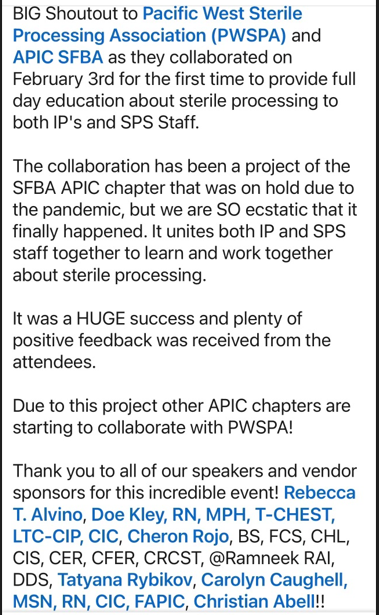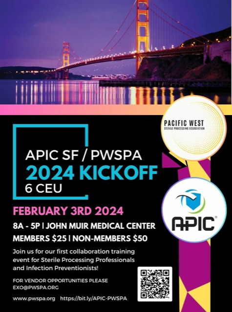 2024 Pacific West Sterile Processing Association (PWSPA)/APIC San Francisco Bay Area (SFBA)February 3, 2024