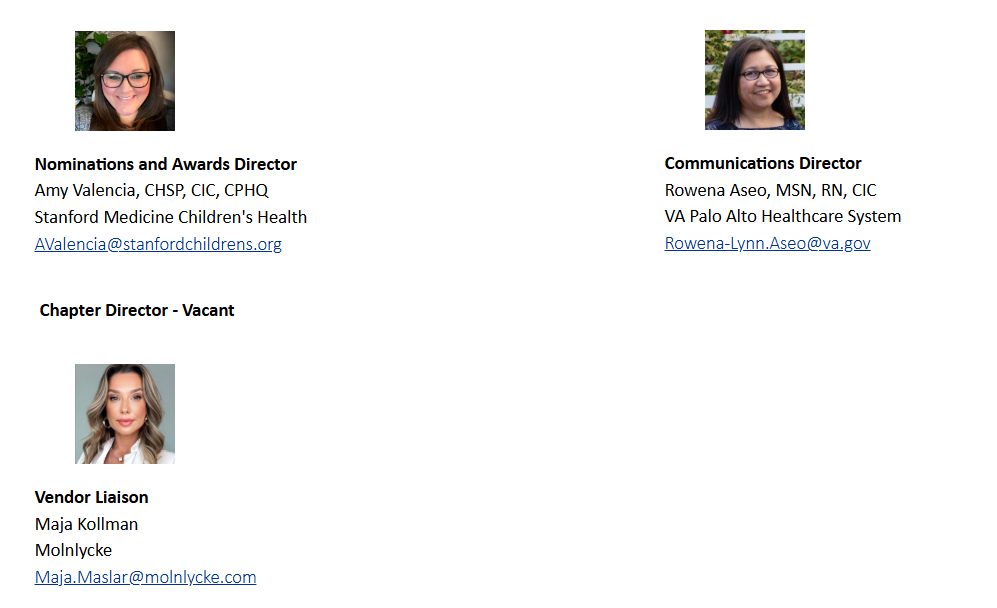 Chapter Director: Sejal Naik, DNP, MHA, RN, CIC