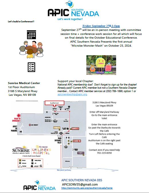 Please be sure to join the chapter- If you are a current APIC member but not a Southern Nevada member. Contact APIC member services at (202)789-1890, option 1 or apicmembership@apic.org.